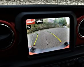 In-car electronics include a 7.0-inch infotainment touchscreen between the two middle vents on the top of the centre stack, and while it’s slightly smaller than average (you’ll need to move up to top-line High Altitude trim to get the 8.4-inch display) the fully-featured Uconnect system comes with most everything an owner could want. Along with the aforementioned Off-Road Pages, my Rubicon’s featured an accurate, easy to use navigation system, fully redundant climate controls that provide nice, big pictographs for selecting ventilation preferences and even let you set the heatable steering wheel and seat warmers, while the audio page includes the usual AM/FM radio selections, plus satellite radio and Bluetooth streaming, all played through an eight-speaker stereo with good sound. You can adjust the backup and forward camera angles from the centre display too, plus the mirror dimmer, which is connected to one of the industry’s new higher-end classic-style frameless mirrors that runs flush to the edges.