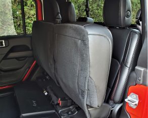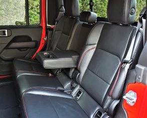 All of the Gladiator’s switchgear is excellent, much of it rubberized with nice big, notchy rims that could easily be used with winter gloves, while Jeep even includes a flip-up lid on the centre stack exposing an auxiliary plug, a USB-A charging/connectivity port, as well as a more up-to-date USB-C port. The front seats and steering wheel rim are three-way heatable, to therapeutic levels no less, plus a large interface for the dual-zone automatic climate control system makes maintaining chosen temperatures easy.