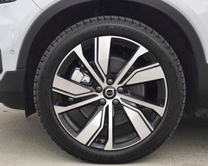 This all-electric cute ute is serious fun at take-off, thanks to dual electric motors that supply four-wheel traction out to wide, grippy tires, my tester’s having been upgraded to a set of 20-inch five-V-spoke diamond-cut alloy rims on 235/45 rubber up front, and 255/40s in the rear, which are the same as on the first XC40 R-Design I drove back in 2019.