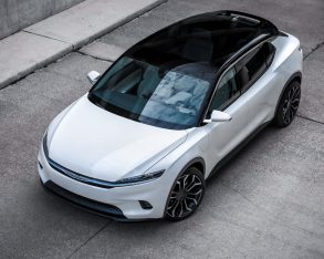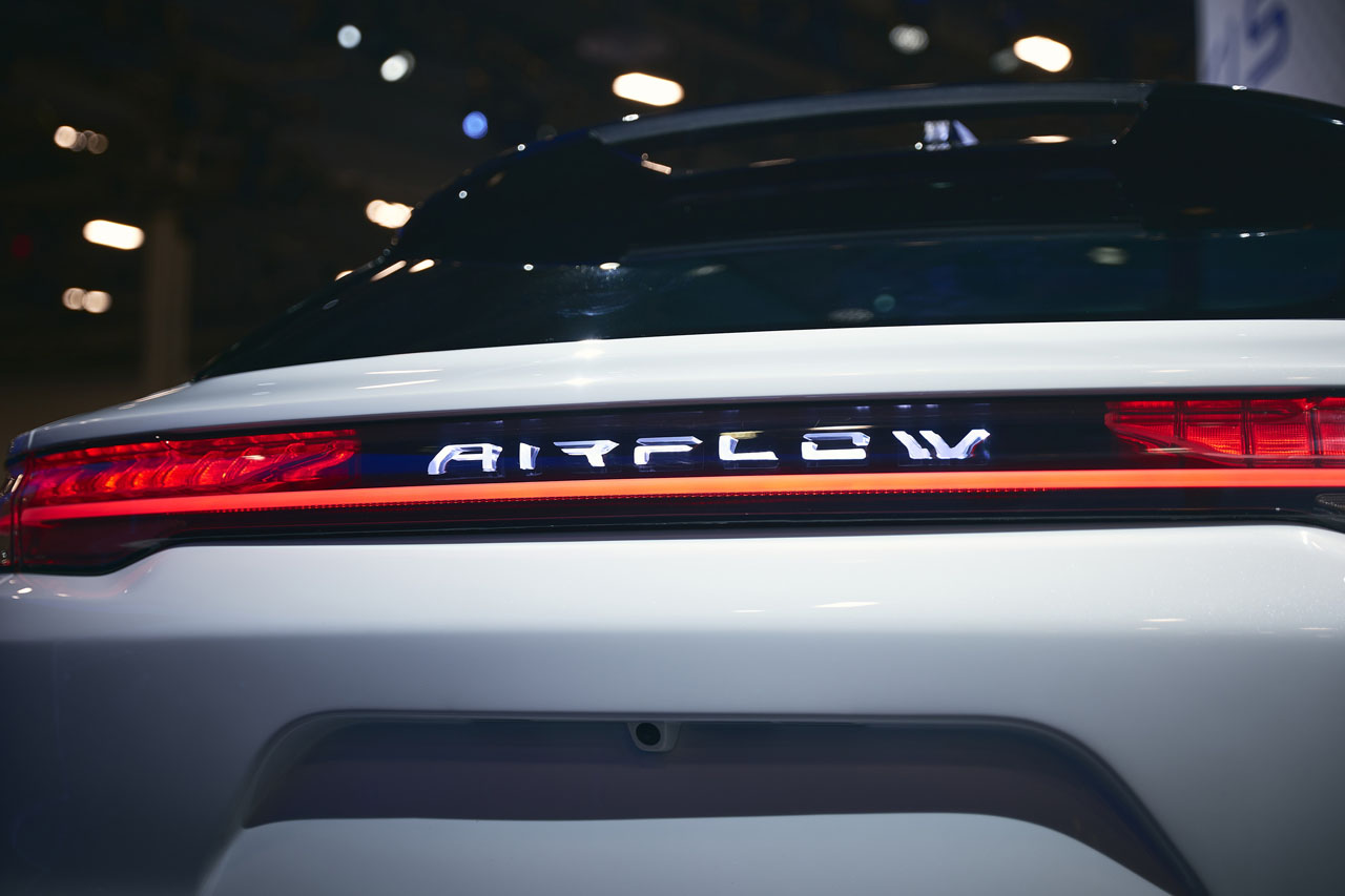 Back to the Airflow at hand, its twinned six-spoke wheels are massive at 22 inches, and quite aggressively styled when compared to the rest of the vehicle, while the frontal lighting elements include narrow eye-like LEDs up top and triple-stacked sets of LED fogs at each corner down below. At the other end, the single-piece taillight cluster encompasses the entire width of the body, and while infused with attractive LED lighting elements at each corner, houses unique white “AIRFLOW” lettering at centre. Remove that name, however, and the entire SUV might be mistaken for Porsche’s Cayenne Coupe from behind, but at least its design team kept the Airflow in good company.